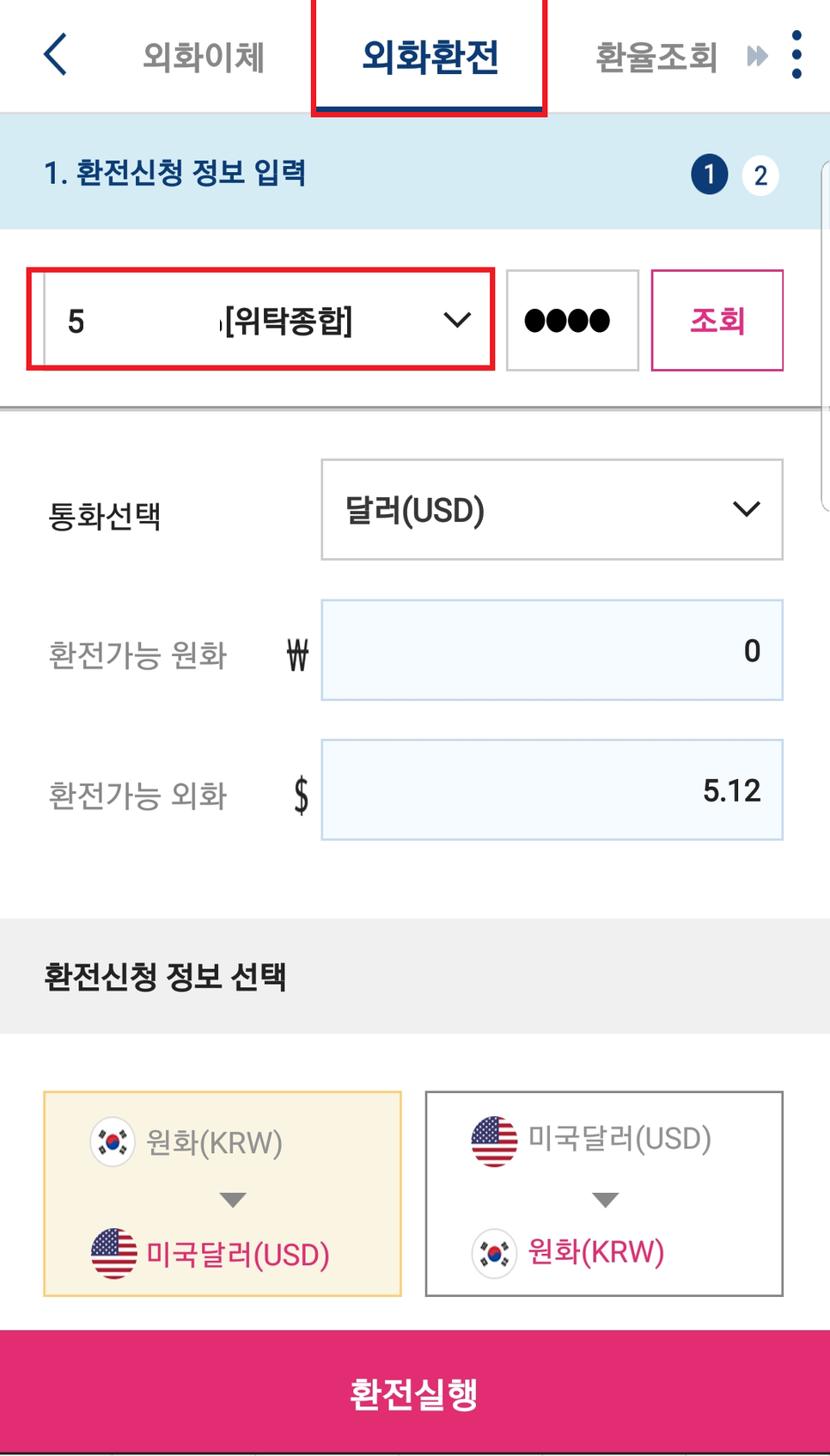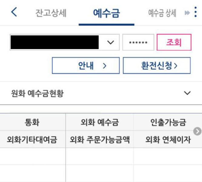 위 화면에 보이는 환전을 누르면 외화환전으로 넘어가게 되고 그러면 미국주식을 사기위한 환전이 가능해집니다.