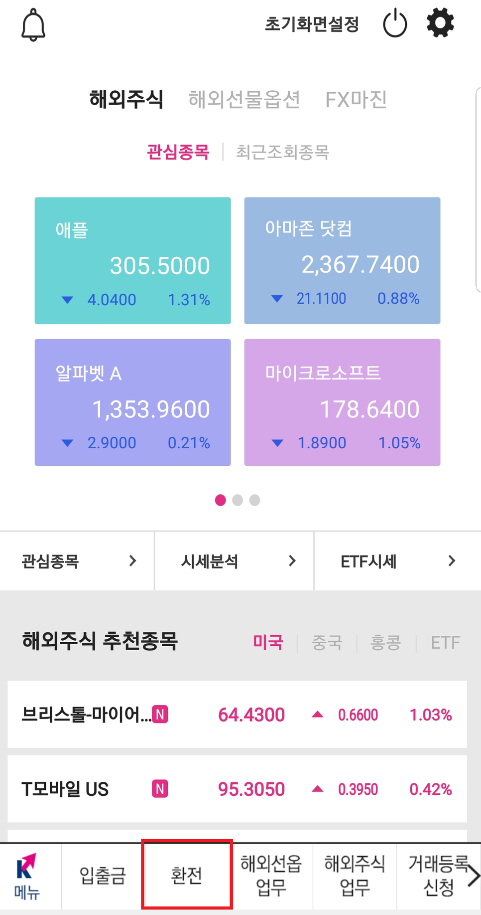 일반적으로 미국주식을 매수하기 위한 환전은 오전 9시에서 오후 3시 반 사이에 사람들이 많이 합니다. 오후 3시 30분 이후로도 가환전이라는 명목으로 가능은 합니다. 대신 다음날 기준으로 환율 적용을 받게 됩니다.