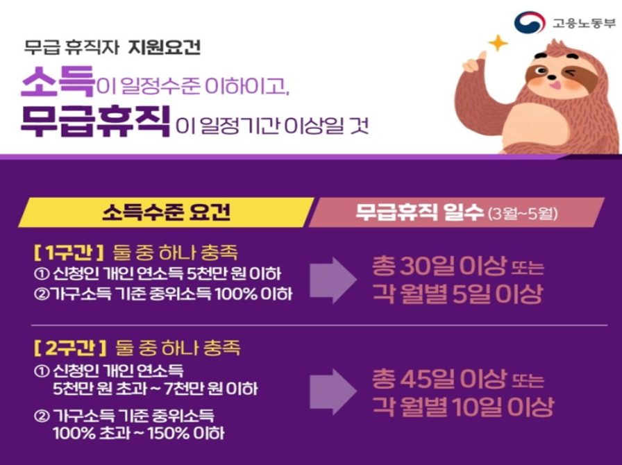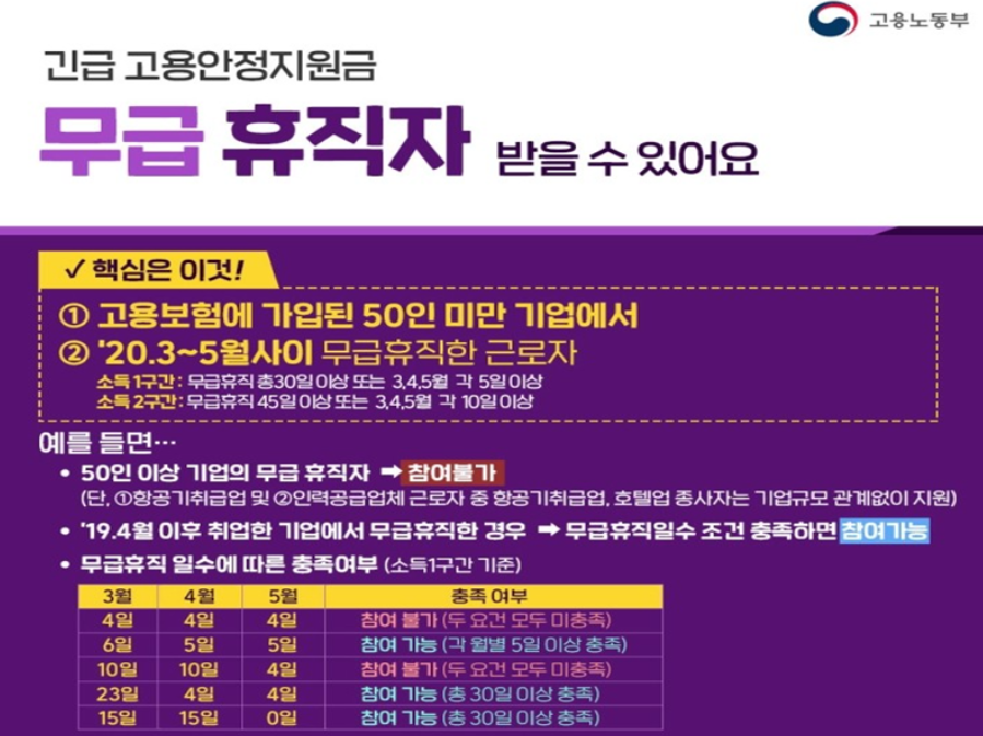 코로나 무급휴직 지원금 신청방법 및 무급휴가 정부 지원금 정보공유, 무급휴직 지원금 신청자격