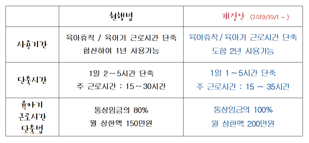 2. 육아기 근로시간 단축 확대 (2019/10/01부로 시행)