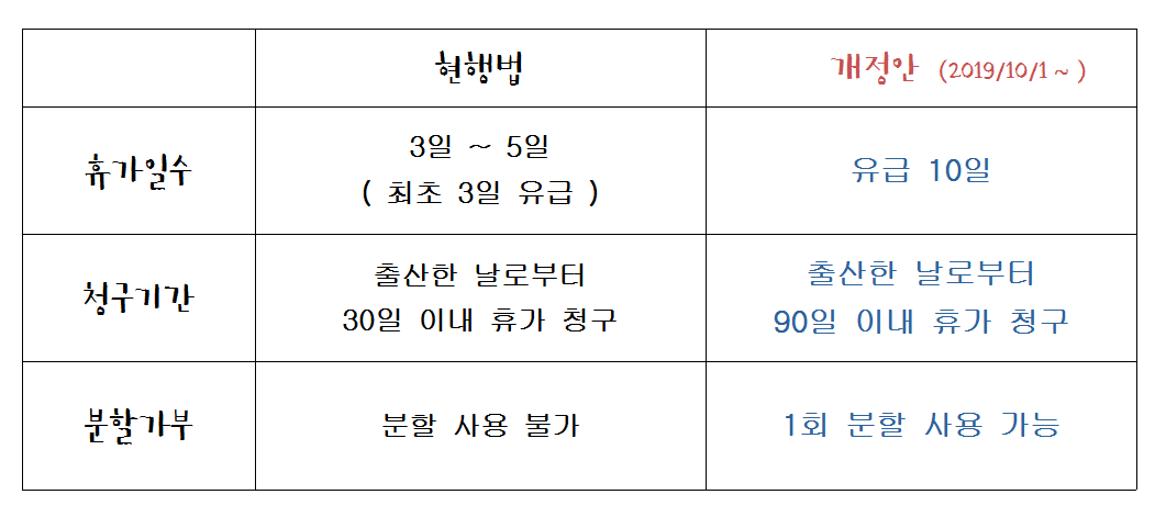 1. 배우자 출산휴가 확대 (2019/10/01부로 시행)
