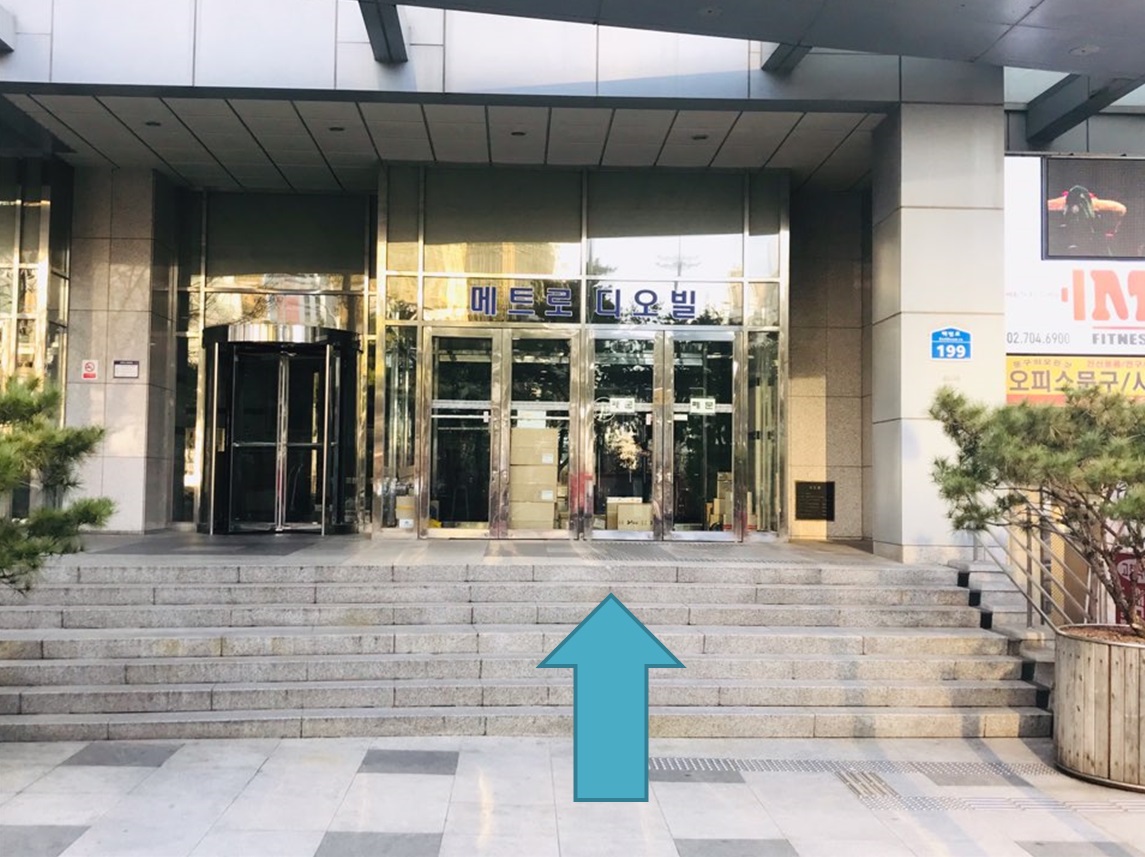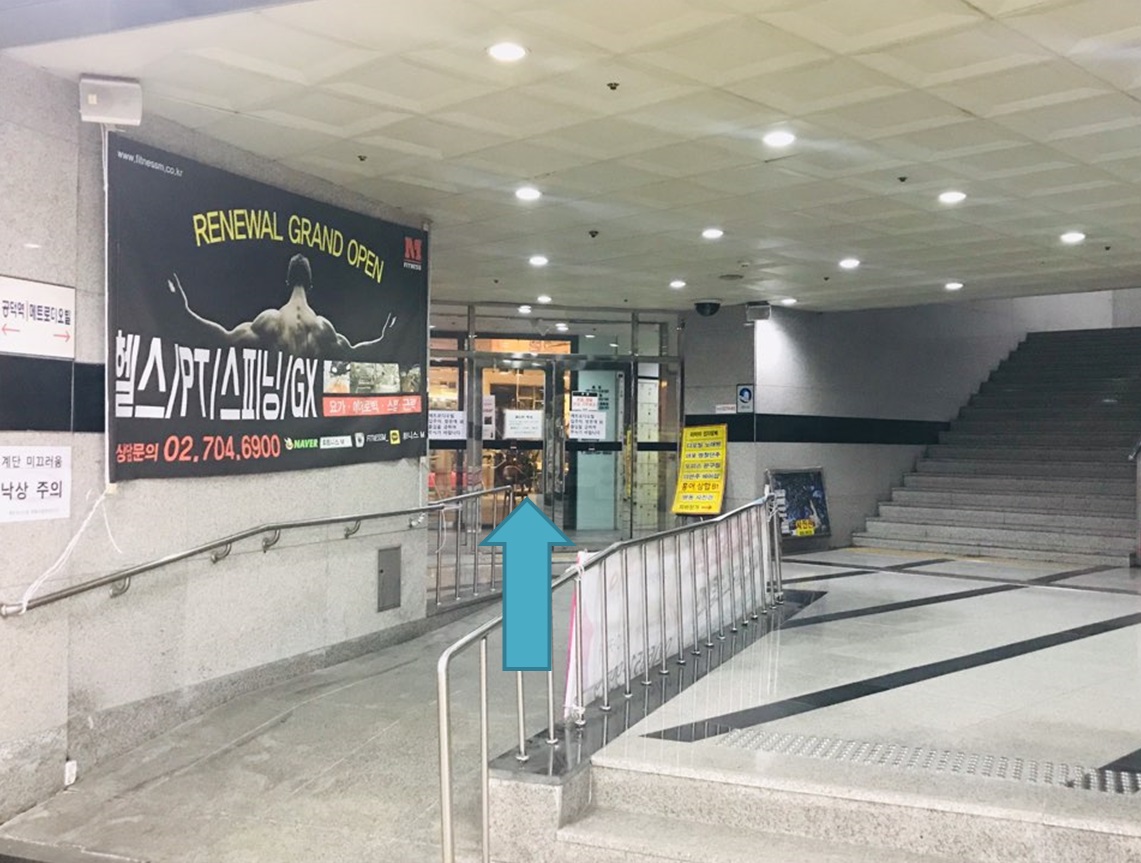 # 화살표 방향을 따라서 건물 안으로 들어간다 / Follow the direction of the arrow and enter the building.