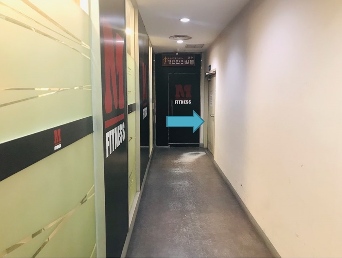 # 화살표 방향으로 복도 끝까지 간다 / Go to the end of the hall in the direction of the arrow.