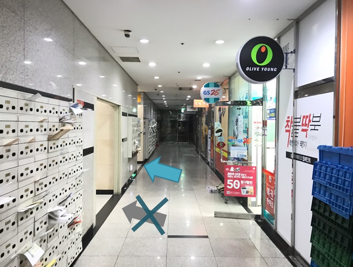 # 올리브영이 있는 복도쪽으로 향한다 / Head towards the hallway with Olive Young. Don't ask the security office. It will be unkind. Go and see this blog