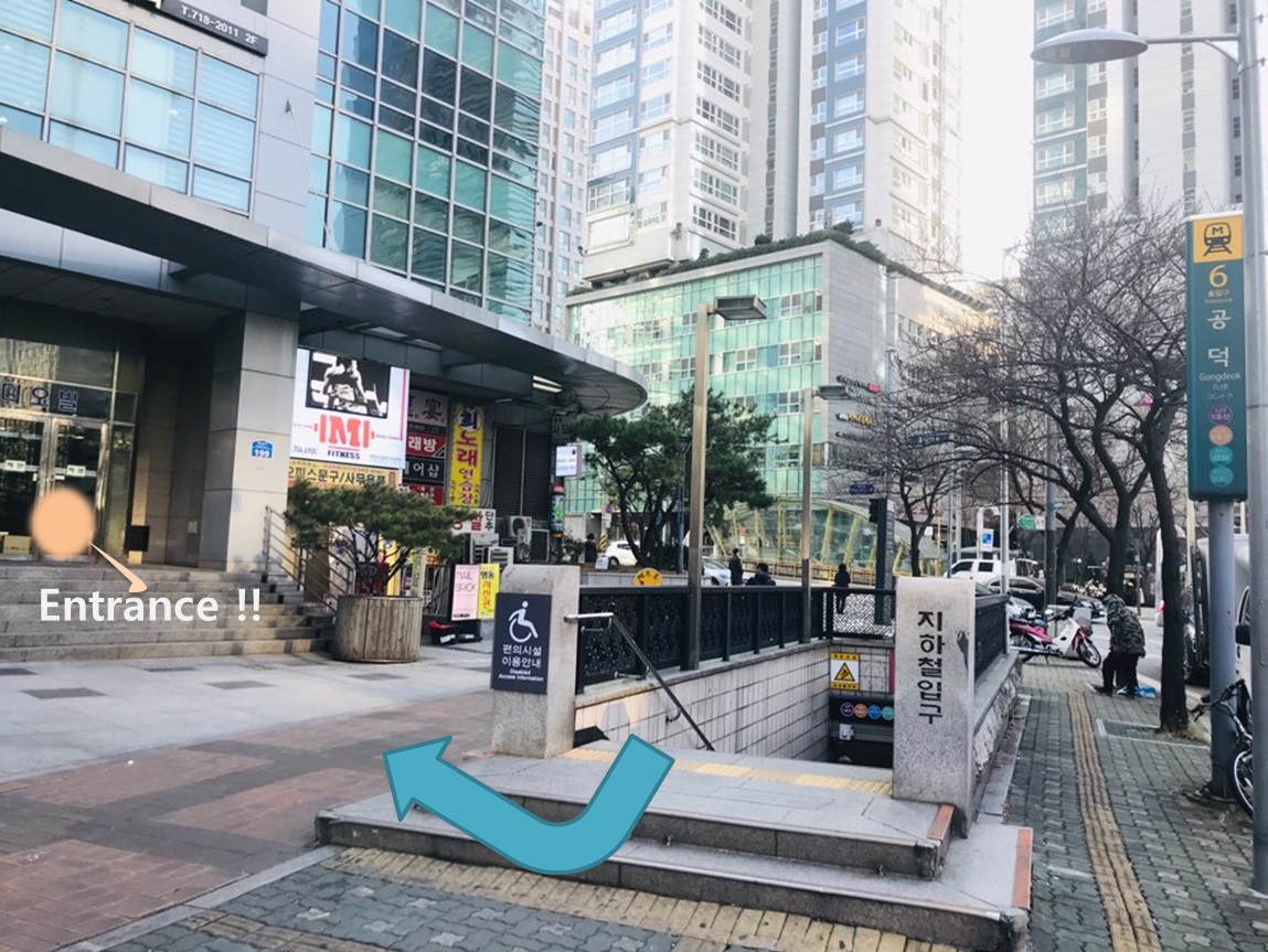 # 6번 출구로 나와서 오른쪽으로 향한다 / Exit 6 and turn right