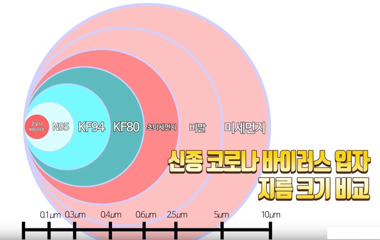 KF94 마스크 : 0.4 마이크로 크기의입자를 80% 차단