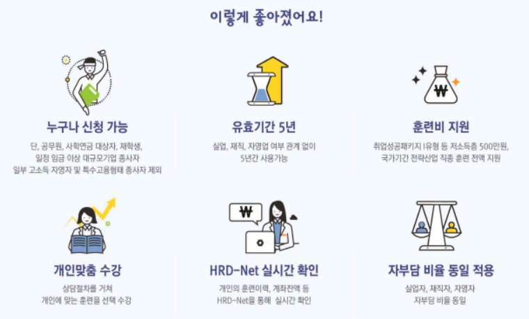 우선적으로 이 제도는 실업자를 위해 만들어진 제도로 취업 및 창업을 위해서 직업 관련 능력을 개발하고 훈련하는데 초점이 맞추어진 제도입니다.