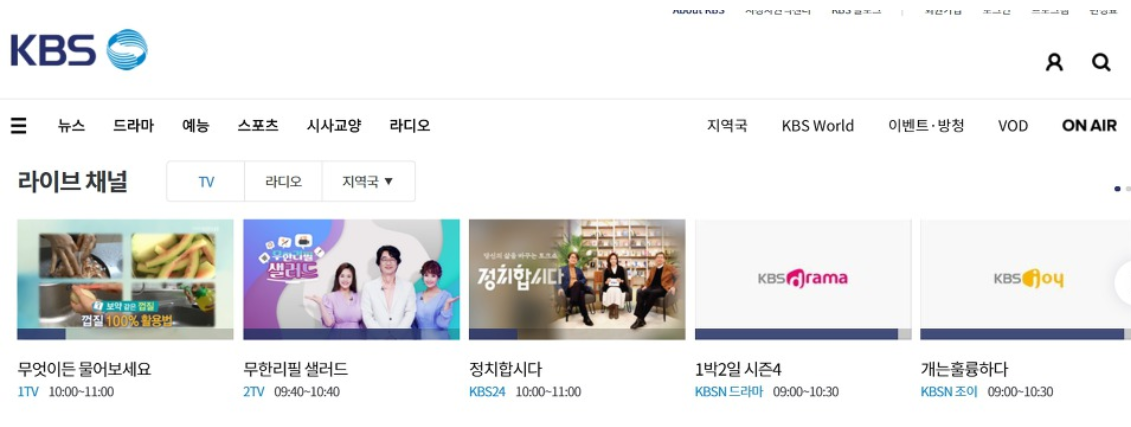 이 포스팅의 메인 주제인 드라마 예능 다시보기 무료사이트의 주제와 일치하는 것은 kbs입니다. kbs는 mbc. sbs 와는 다르게 비회원으로도 드라마나 예능 다시보기를 마음껏 할 수 있습니다. 사실 이런면에서 우리가 내는 수신료의 가치가 인정되는 것 같습니다.